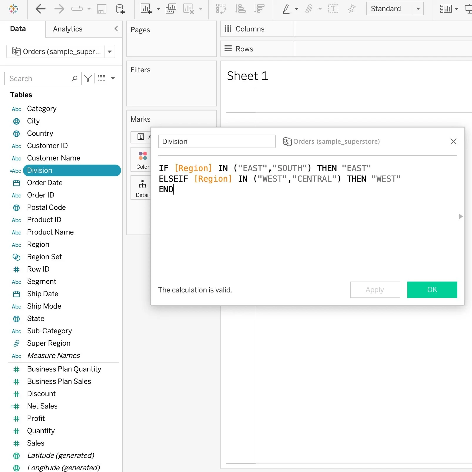 Create a calculated field: Select the measures and/or dimensions you wish to use for your calculation.