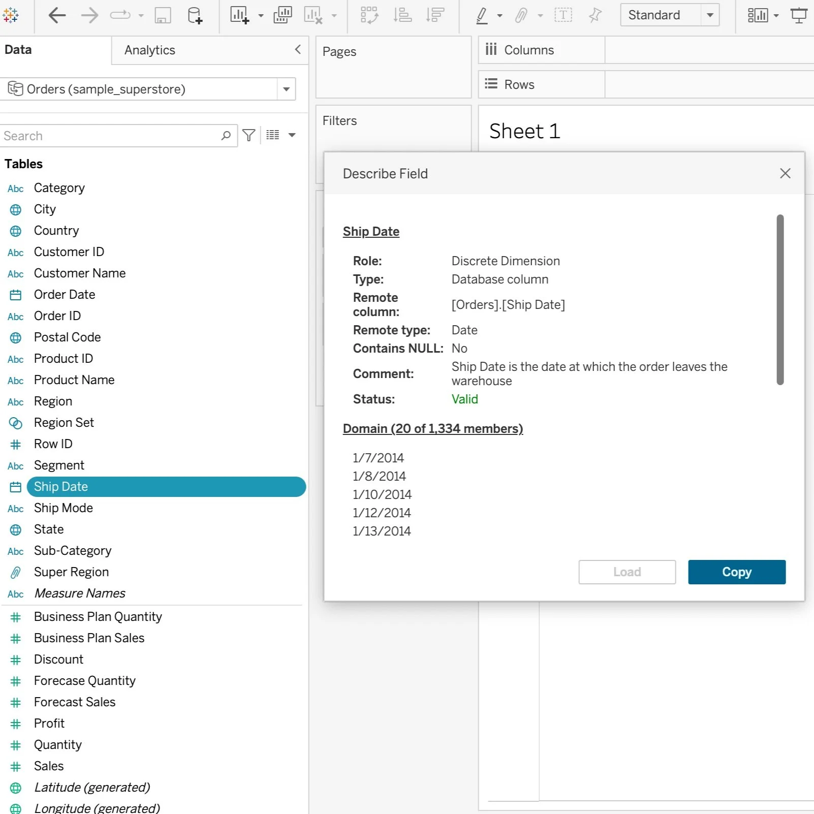 Right-click on the field again and choose Describe. The definition will be visible in the Comment section.